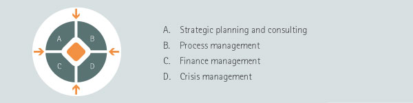 We’ll drop in at your company and work on site with your management teams, counsel you in all concerns of the strategic and operative management and help design trendsetting solutions. Should you request, we are also ready to take over the complete management and governance of your company, till the goals aimed at are achieved.